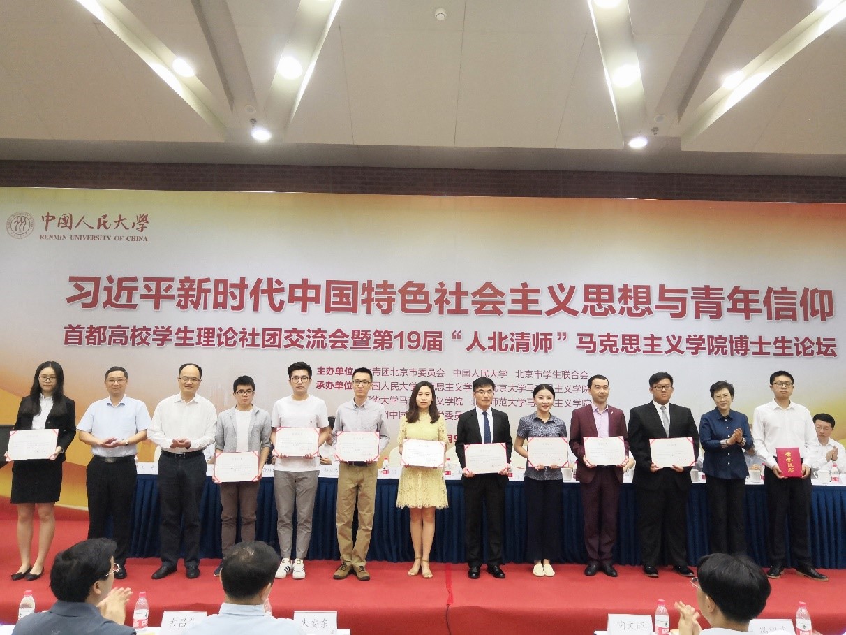 6月9日,习近平新时代中国特色社会主义思想与青年信仰——首都高校员工理论社团交流会暨第19届“人北清师”永利3044noc博士生论坛在中国人民大学世纪馆举行。公司理论社团“永利官网习近平新时代中国特色社会主义思想学习研究会”获评“首都高校学习习近平新时代中国特色社会主义思想十佳员工理论社团”荣誉称号,马院研究生二年级员工王蔷蔷及其社团成员撰写的论文《中国社会主要矛盾转变的世界历史意义——基于马克思主义哲学视角》获评交流会优秀论文。